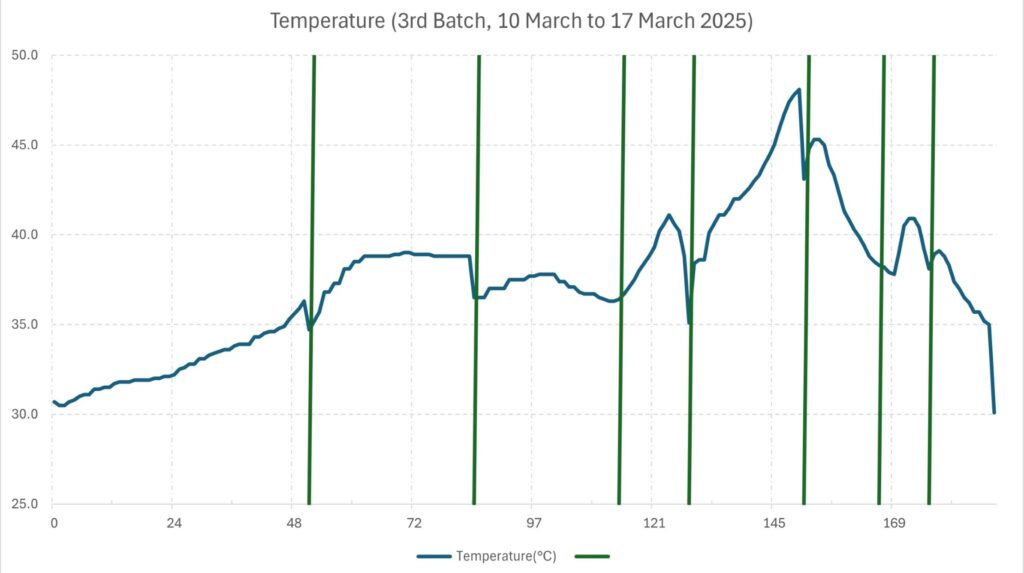 By detecting microbial phase changes through temperature inflection points, GOcacao automatically identifies the optimal moment to aerate, ensuring consistent, well-controlled fermentation every batch.